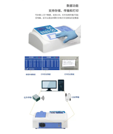 9、仪器内置打印机,可打印当前数据和所有存储的历史数据;