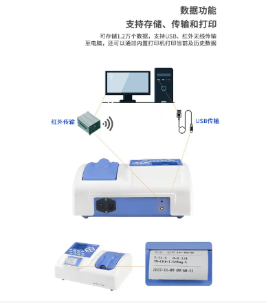5、向计算机传输当前数据和所有存储的历史数据,支持USB传输和红外无线传输(可选);
