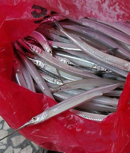 “怎么它的颌特别长,像一把剑!”眼前这些怪鱼个头很小,长长的尖嘴引人注目,年轻的渔民占绵高并不认识它。细细观察,占绵高发现它们身体细长而扁,头部呈蓝绿色,体侧呈银白色。