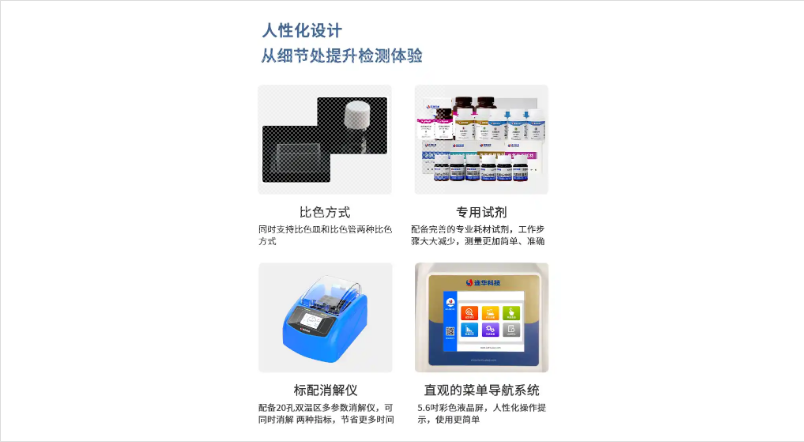2、标配消解仪:标配20孔双温区多参数消解仪(可选配),可同时消解两种指标不同温度水样,并可满足用户大批次样品检测的需求,节省时间;
