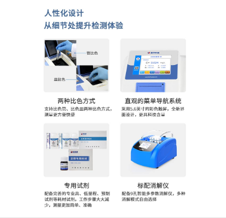3、配备完善的专业试剂:配备完善的专业高、低量程、预制试剂等试剂耗材,工作步骤大大减少,测量更加简单、准确;