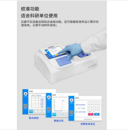 4、校准功能:仪器自备校准功能,可根据标准样品计算并存储曲线,无需手动制作曲线;